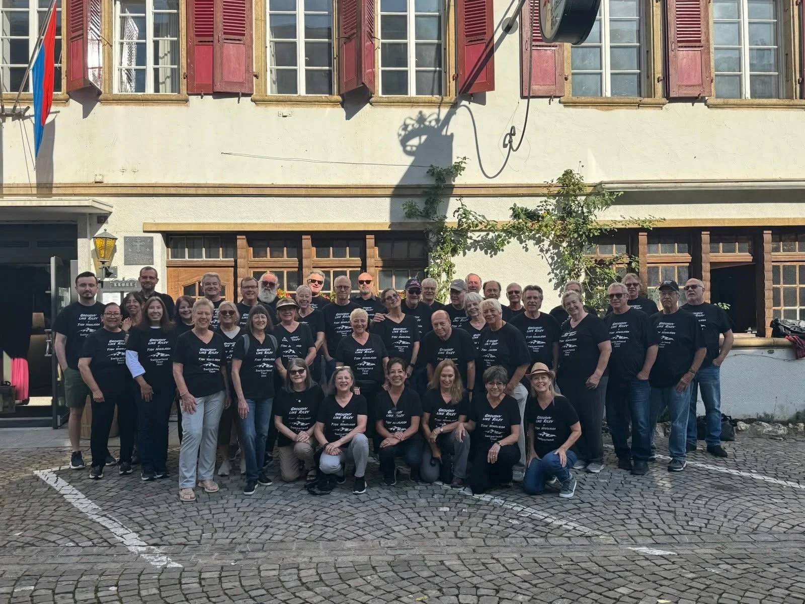The September Switzerland tour with Grouchy Like Riley and friends tour was fun, beautiful, and very memorable. Our friend and promoter Martin Meier and our bus driver, Martin, were wonderful. Marvin Dykhuis, Chip Dolan, and I had played concerts in Switzerland before, but those days were hectic and we didn’t get much sight seeing in. This trip was a lot more relaxed and we all got to enjoy beautiful countryside and many more cultural experiences such as chocolate making at the Cailler Chocolate Factory, a glass blowing factory, a mountain top restaurant in Weisenburg, and Charlie Chaplin’s home and museum…And a bus load of fan friends!! Oh yes, our concerts were very fun and well attended too.
